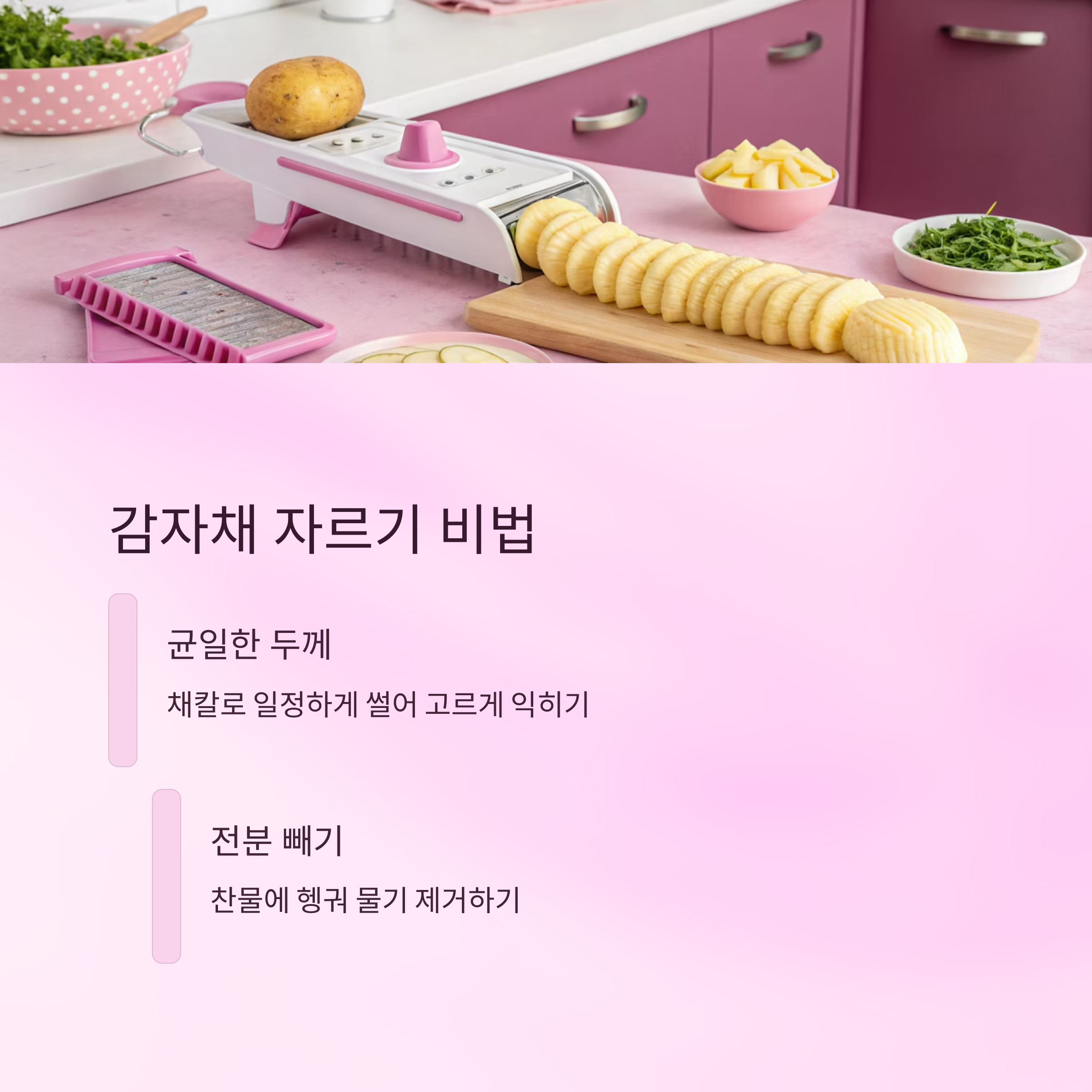 이제 본격적으로 감자채전을 더 맛있게 바삭하게 만드는 꿀팁들을 하나씩 살펴볼게요. 작은 차이가 완성도를 바꾼다는 걸 직접 느낄 수 있을 거예요. 😊