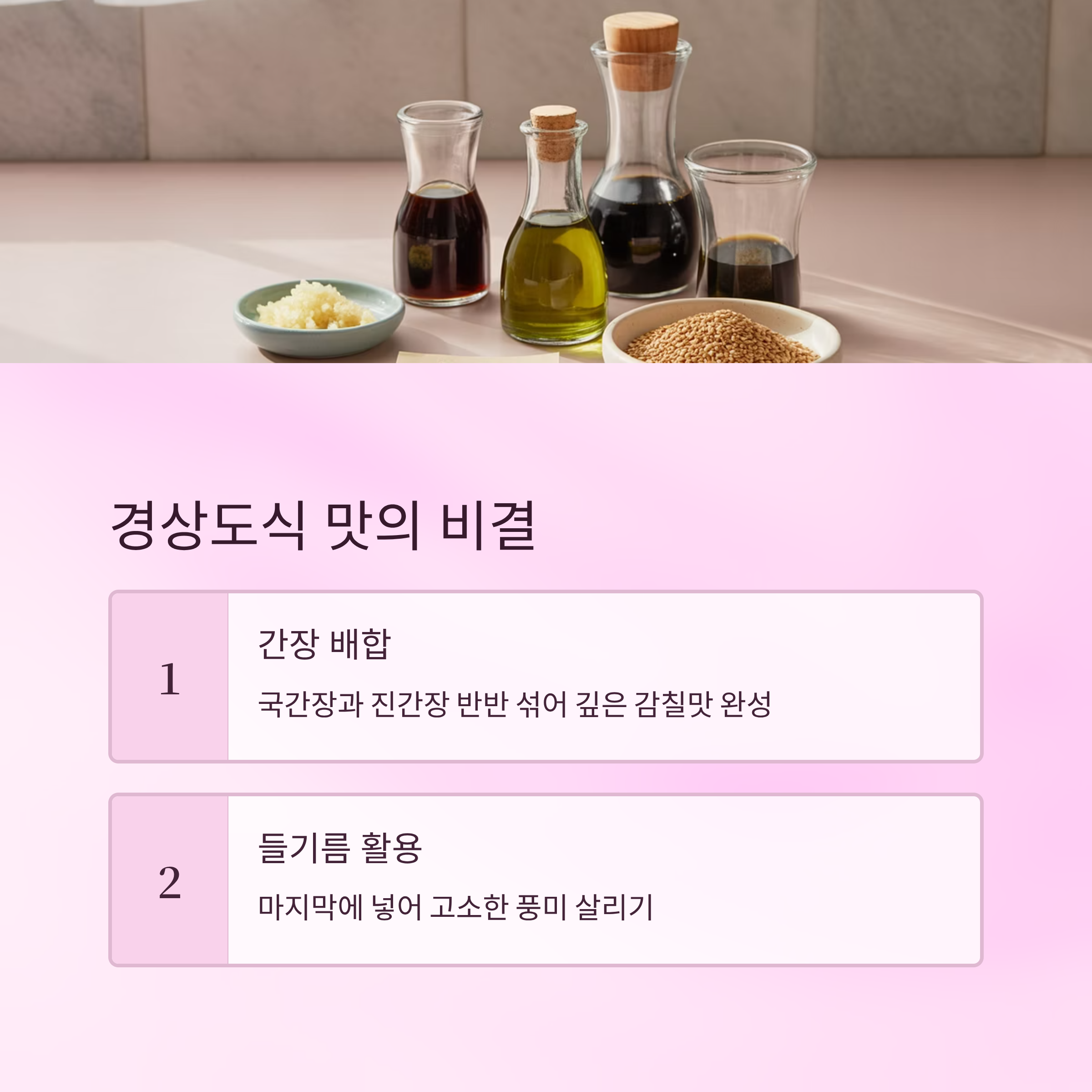경상도식 고구마줄기볶음은 기본적으로 짭짤하면서도 깊은 감칠맛이 특징이에요. 간장의 종류에 따라 풍미가 달라지기 때문에, 국간장과 진간장을 반반 섞는 방식이 자주 쓰여요. 여기에 마늘향과 들기름의 고소함이 조화를 이루면 입안에서 퍼지는 맛이 정말 특별해요.