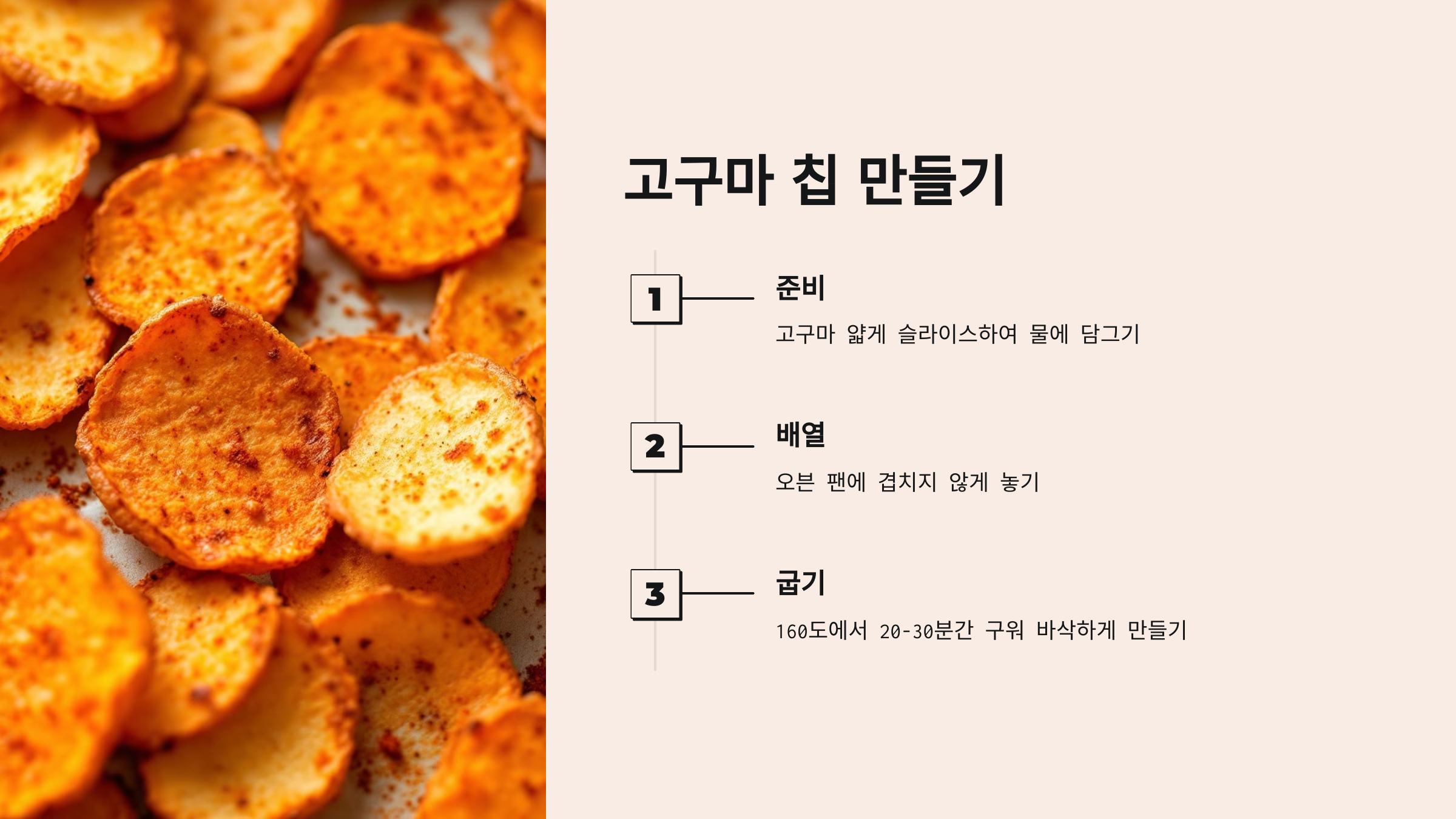 - 160도에서 20-30분간 구워주면 바삭한 고구마 칩 완성입니다.