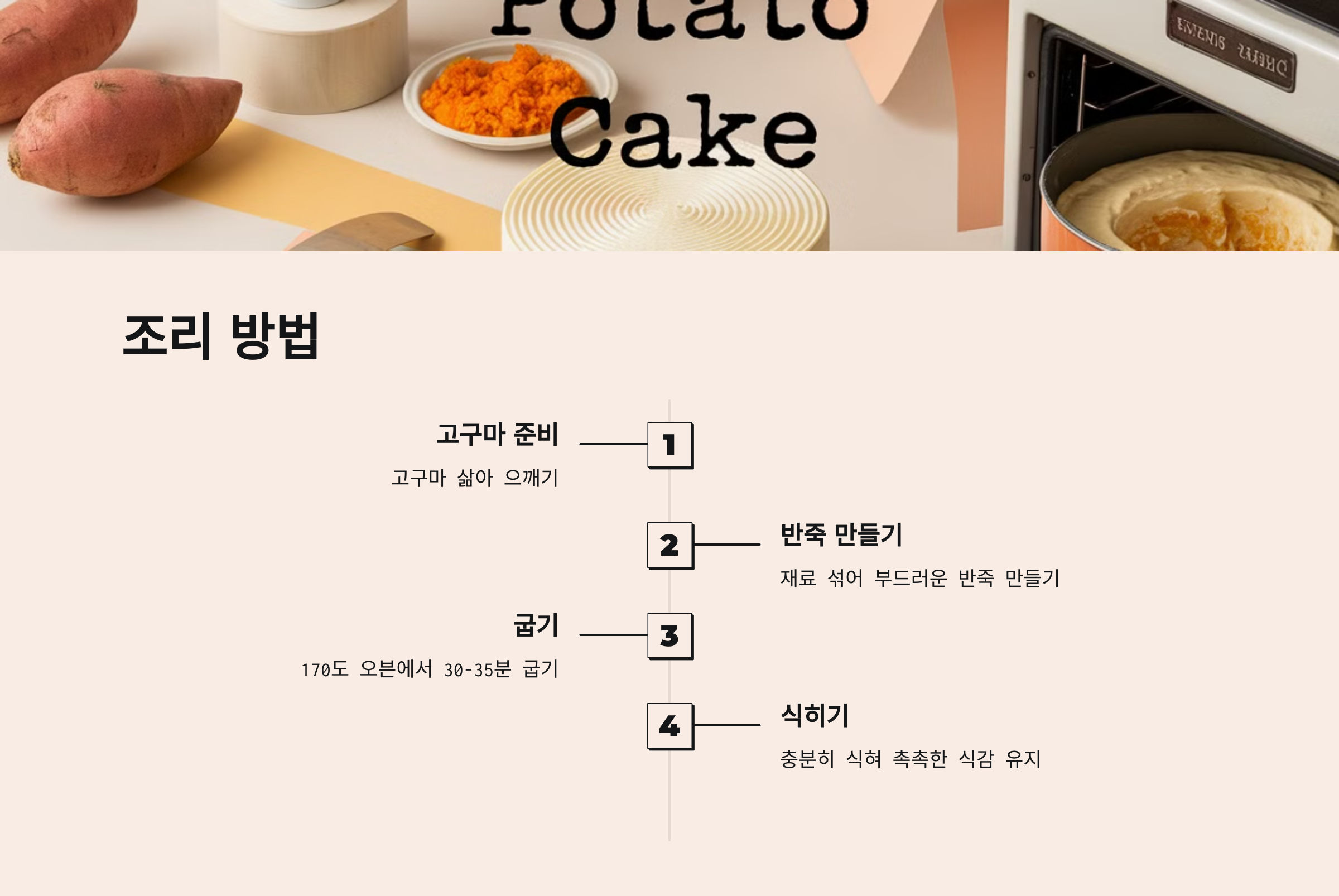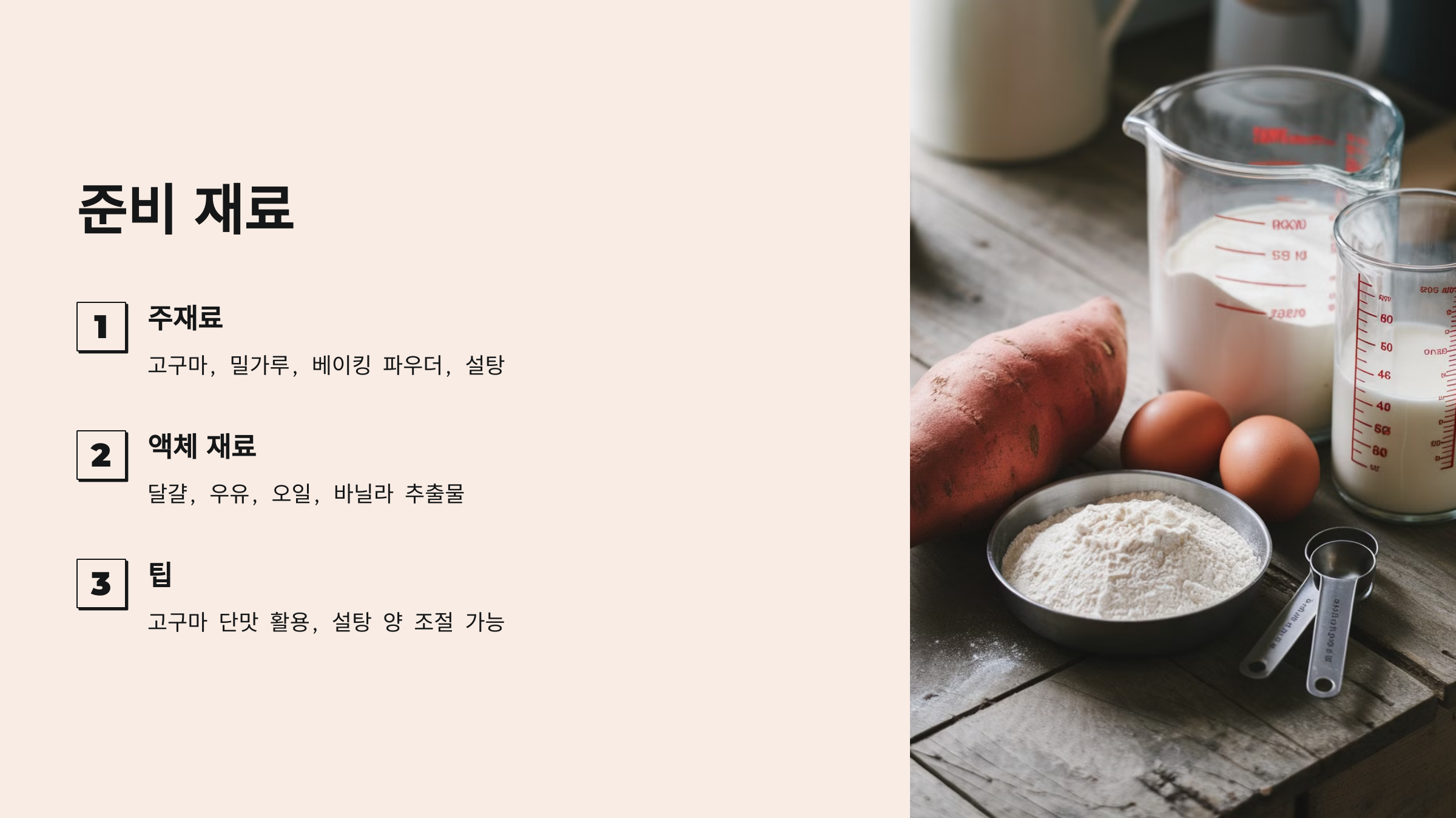 TIP: 고구마의 단맛을 활용하므로 설탕은 최소한으로 넣어도 좋습니다. 기호에 따라 설탕 양을 조절하세요.