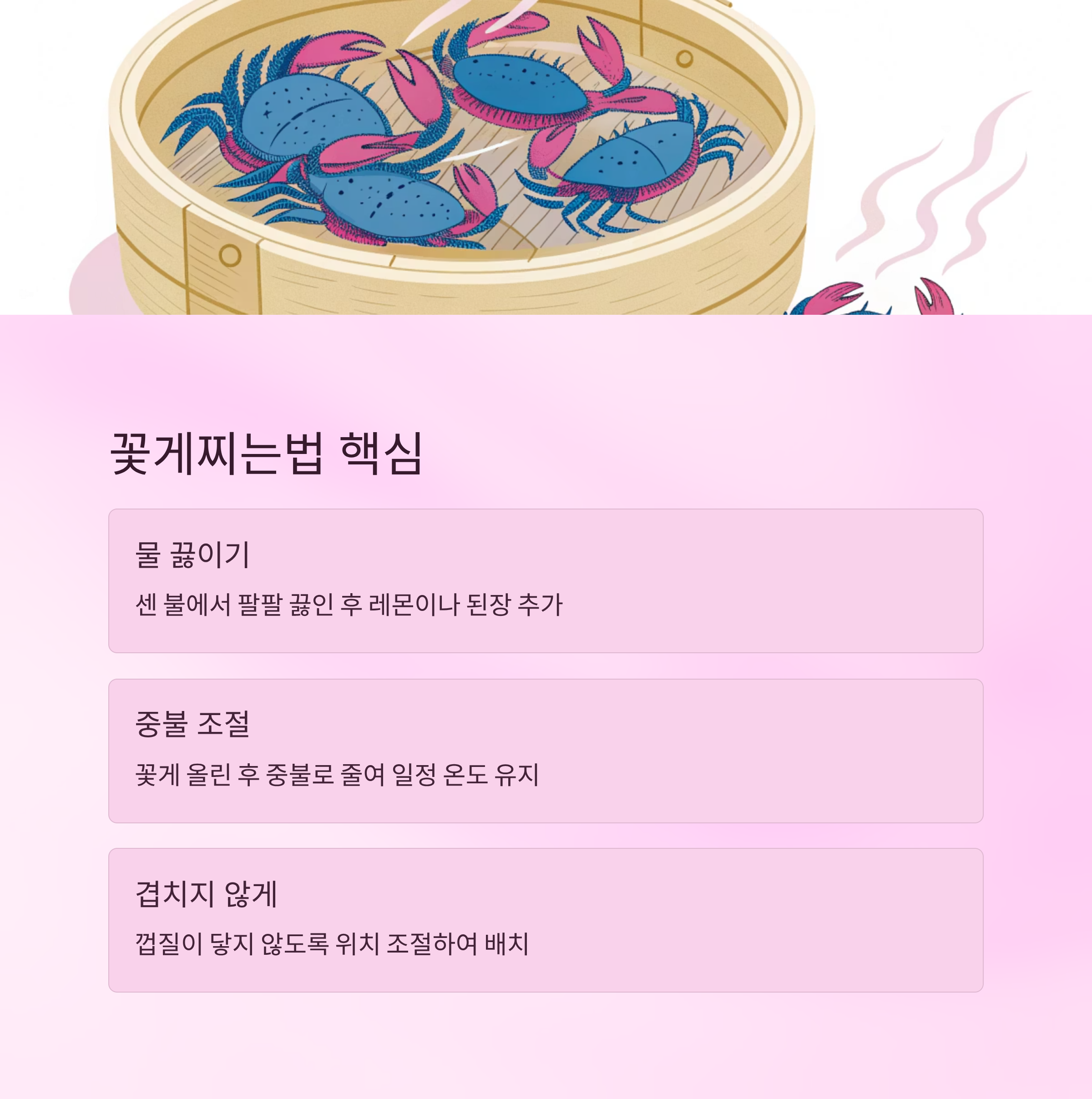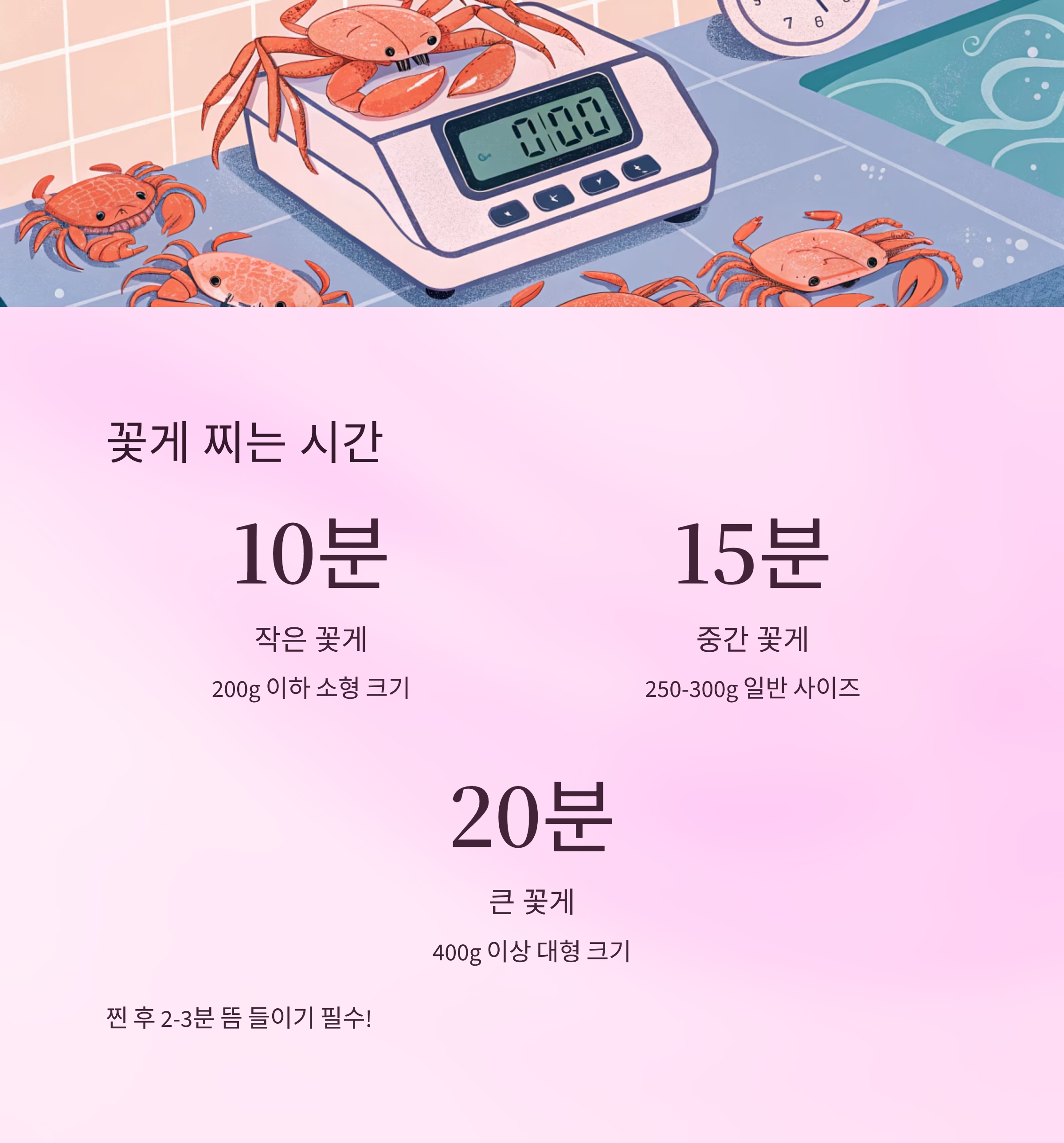 ⏱ 꽃게 찌는 시간 조절법