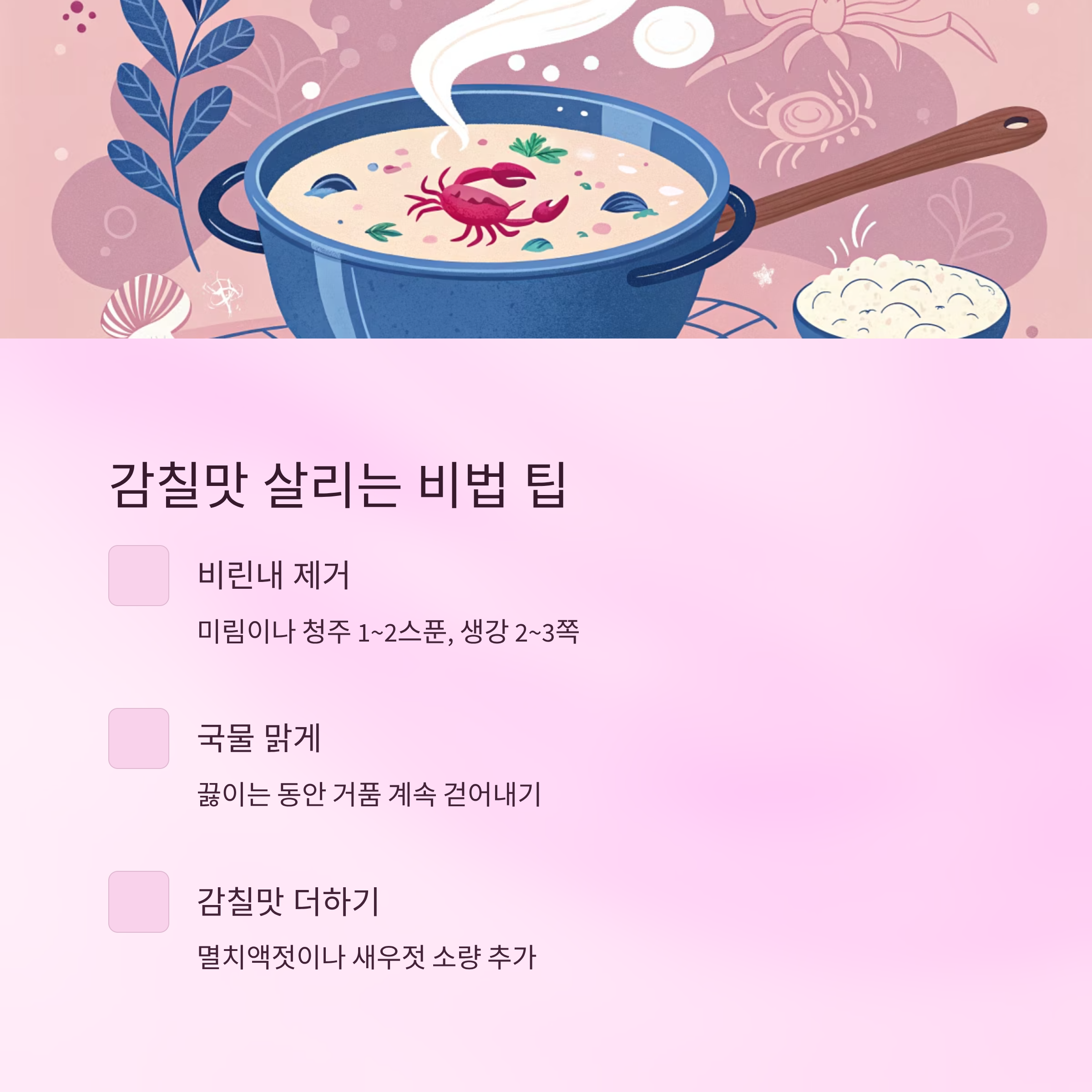 꽃게탕을 맛있게 끓이려면 디테일한 팁이 정말 중요해요. 아무리 좋은 꽃게를 써도, 몇 가지 실수로 국물 맛이 무너질 수 있거든요. 국물의 감칠맛을 살리면서도 깔끔하게 마무리하는 법을 알려드릴게요.