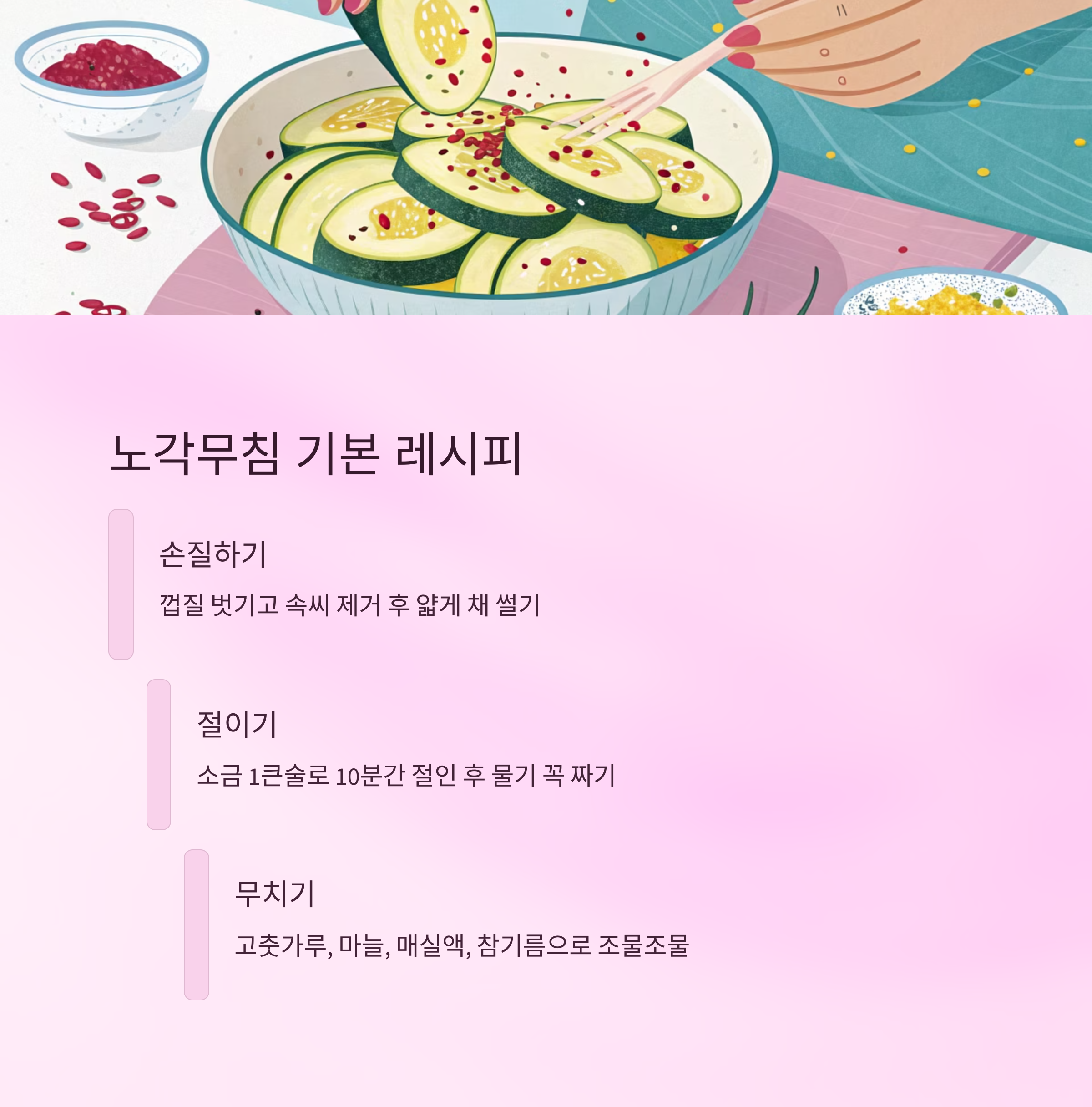 이렇게 고른 노각이라면 어떤 레시피로 만들어도 맛이 살아날 수밖에 없어요! 이제 진짜 핵심인 노각무침 만드는 법으로 넘어가볼까요? 🍽️