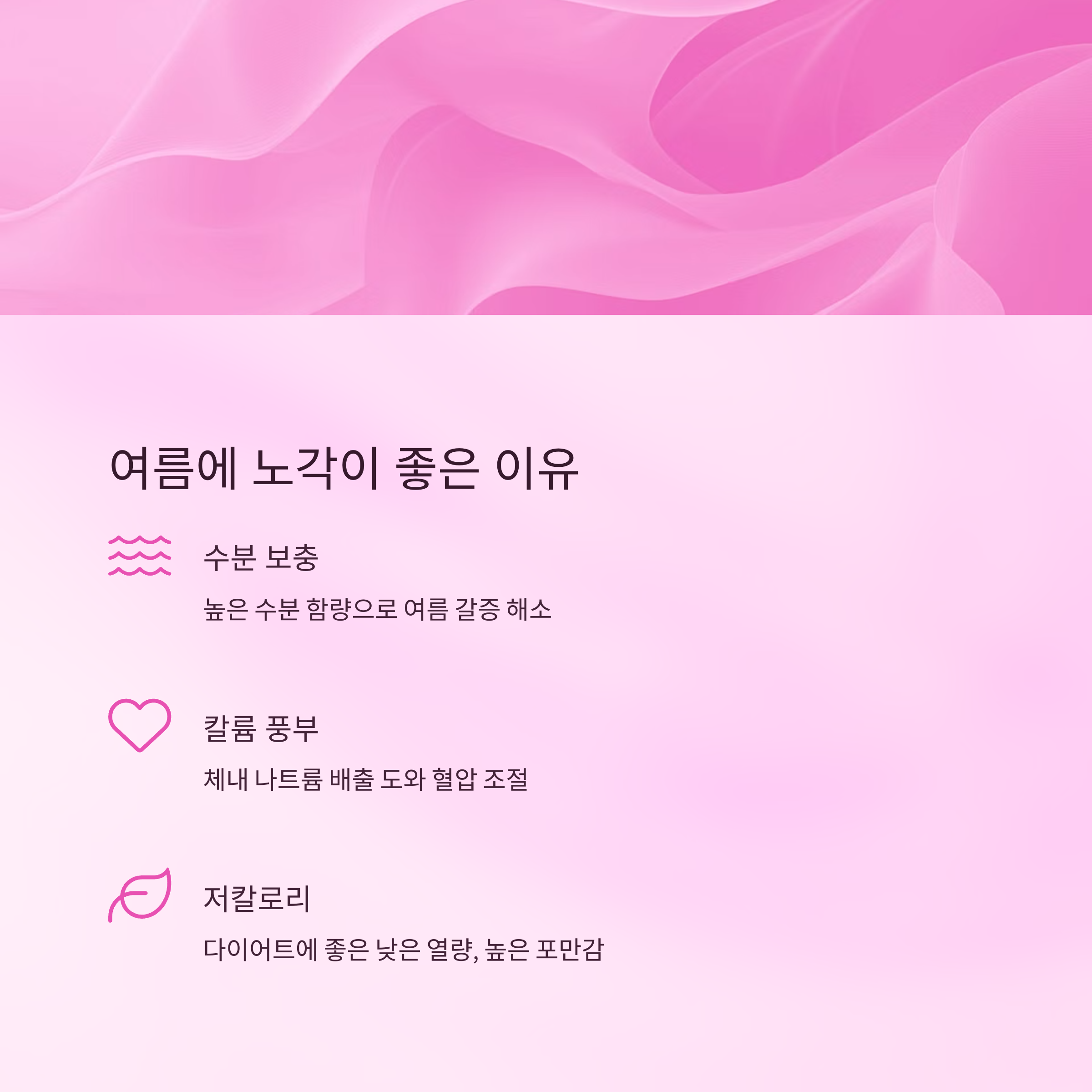 이처럼 노각은 겉보기엔 투박할 수 있어도 알고 보면 속은 꽉 찬 슈퍼푸드예요. 무심코 지나치기 쉬운 식재료지만, 그 가치는 여름철 건강관리에서 빛을 발한답니다.
