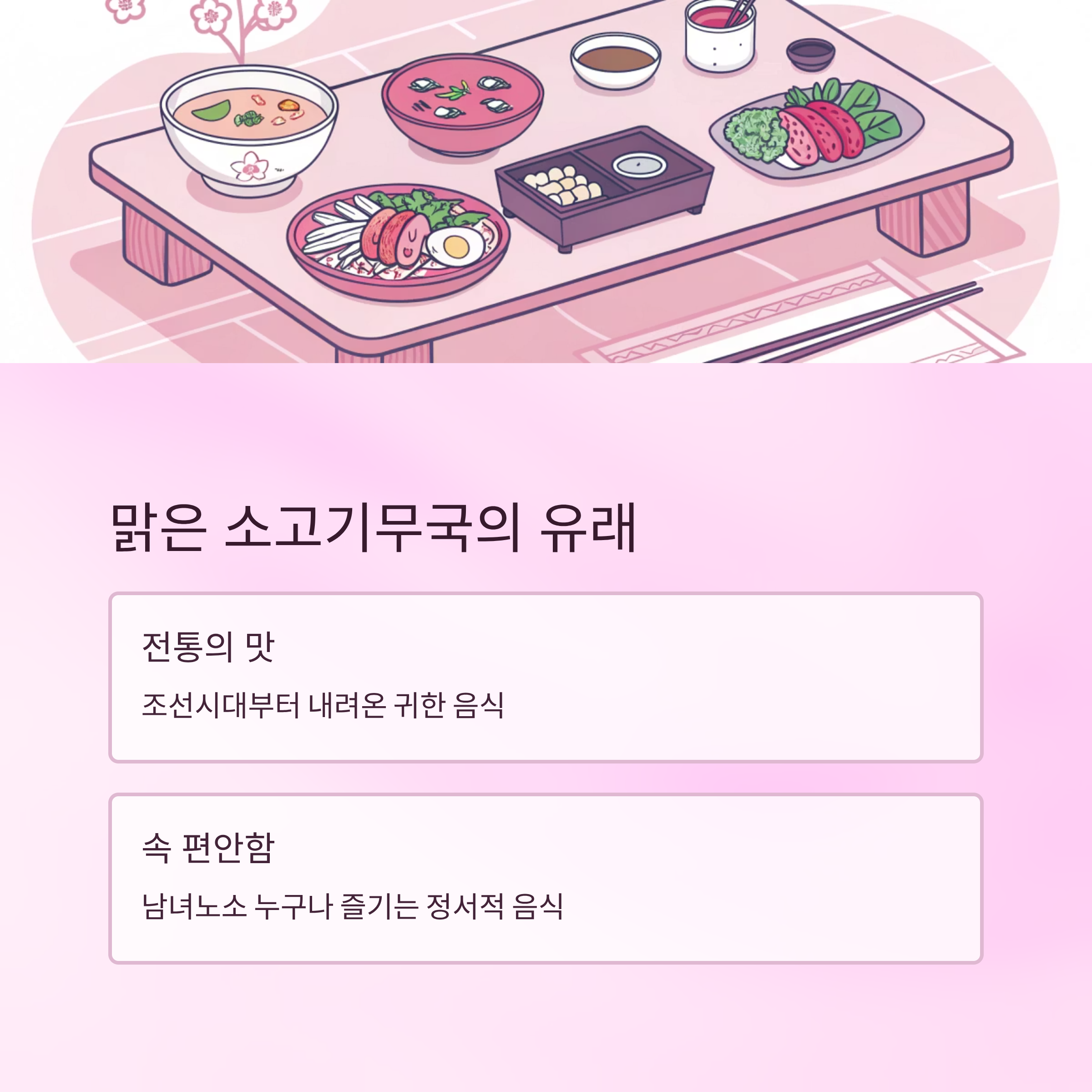 조선시대 문헌에도 맑은 국에 소고기와 무를 함께 끓인 사례들이 등장하고, 궁중에서도 속을 달래주는 식으로 제공됐던 기록이 있어요. 오늘날에는 평범한 가정식으로 많이 먹지만, 원래는 꽤 고급스러운 요리였다는 사실이 흥미롭죠.