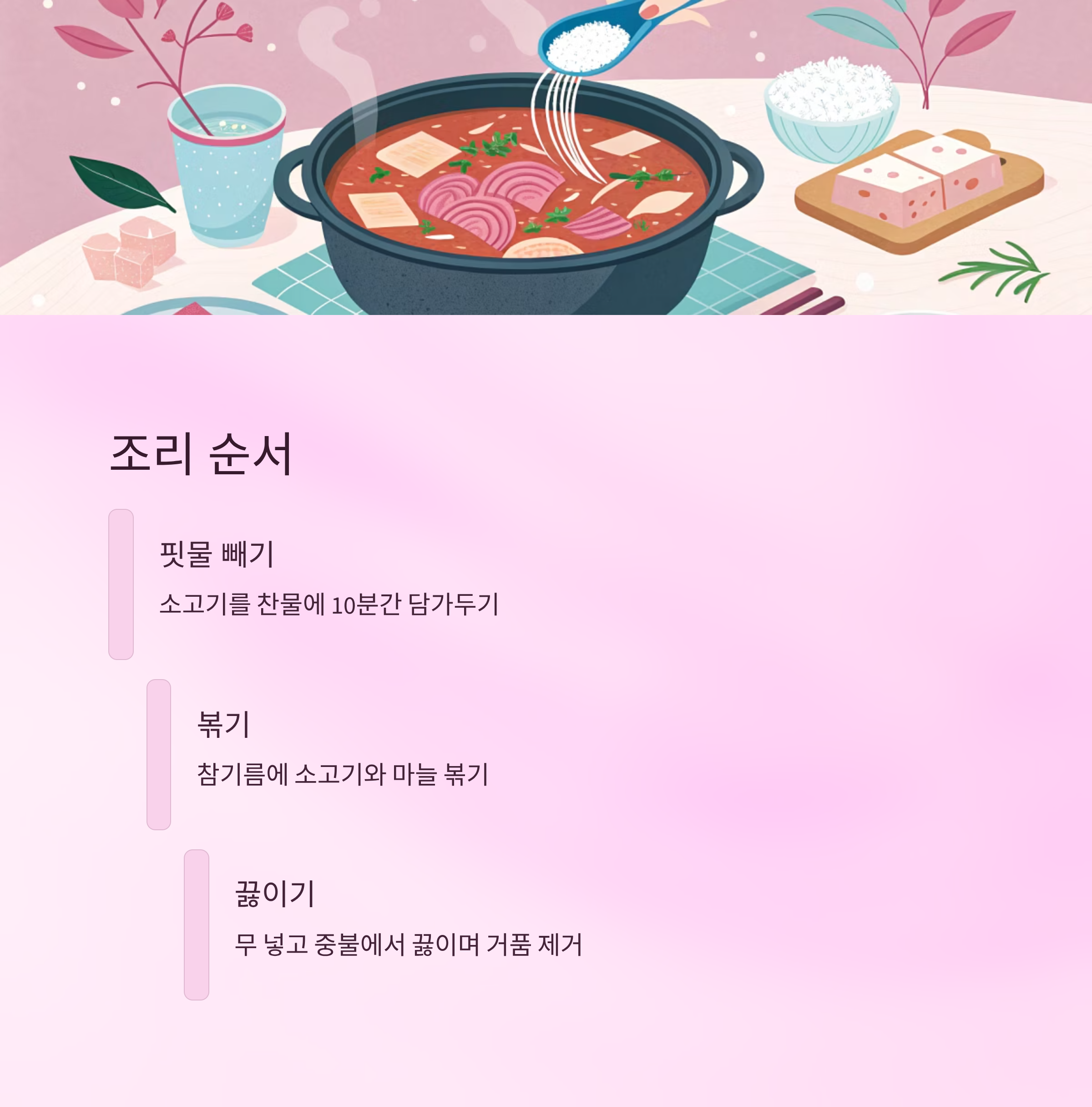 이번 글에서는 맑은 소고기무국 레시피를 처음부터 끝까지 정리해 드릴게요. 필요한 재료와 손질 방법부터 국물 맑게 끓이는 팁, 남은 국 활용 방법까지 모두 담았어요. 요리를 좋아하는 분들도, 매일 밥상에 고민이 많은 분들에게도 도움이 되길 바래요 😊