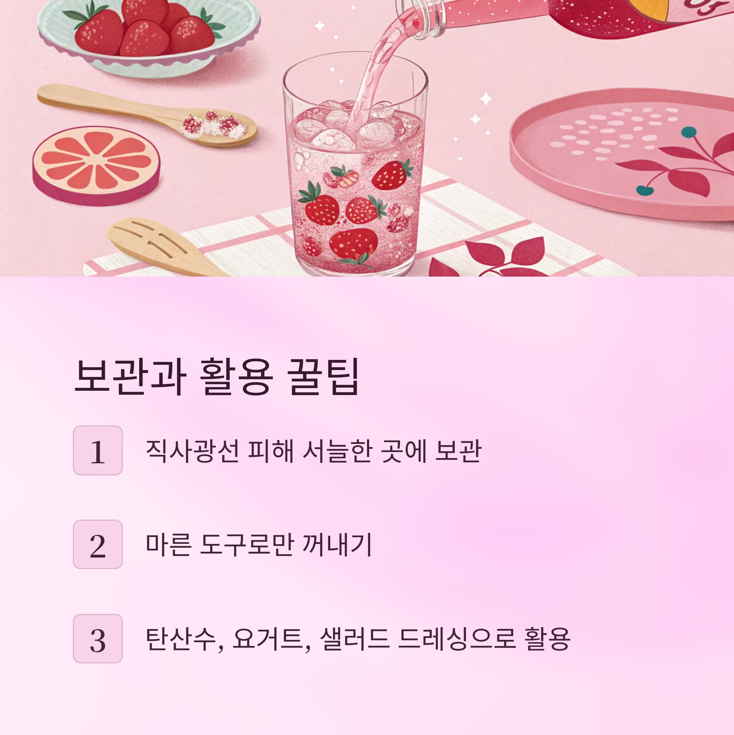 A8. 청을 만든 후 남은 열매는 잼으로 만들거나 스무디 재료로 활용하면 좋아요 🍓