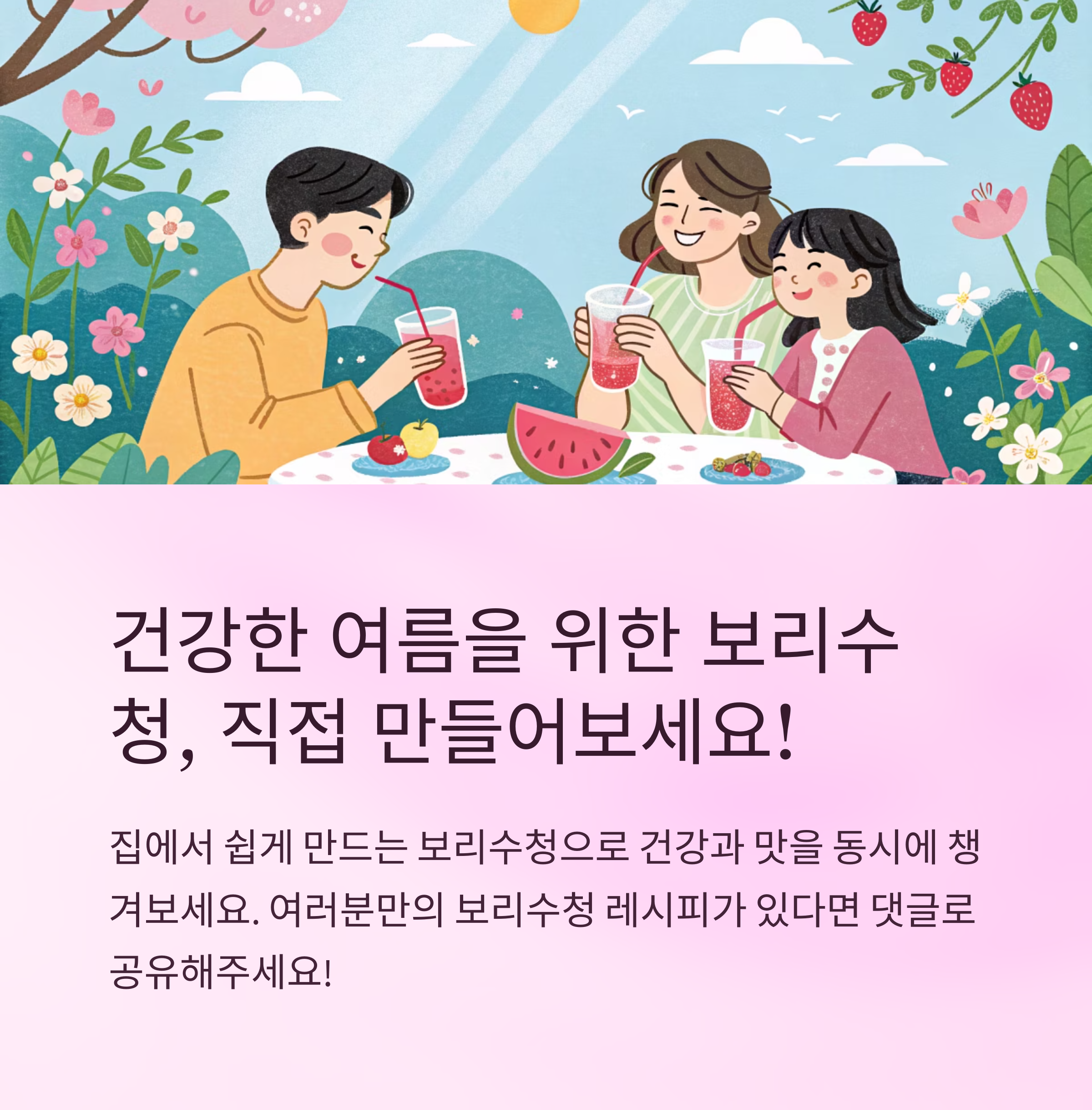 준비물만 잘 갖추면 누구나 만들 수 있는 게 보리수청의 장점이에요. 특별한 도구 없이도 손쉽게 만들 수 있답니다!