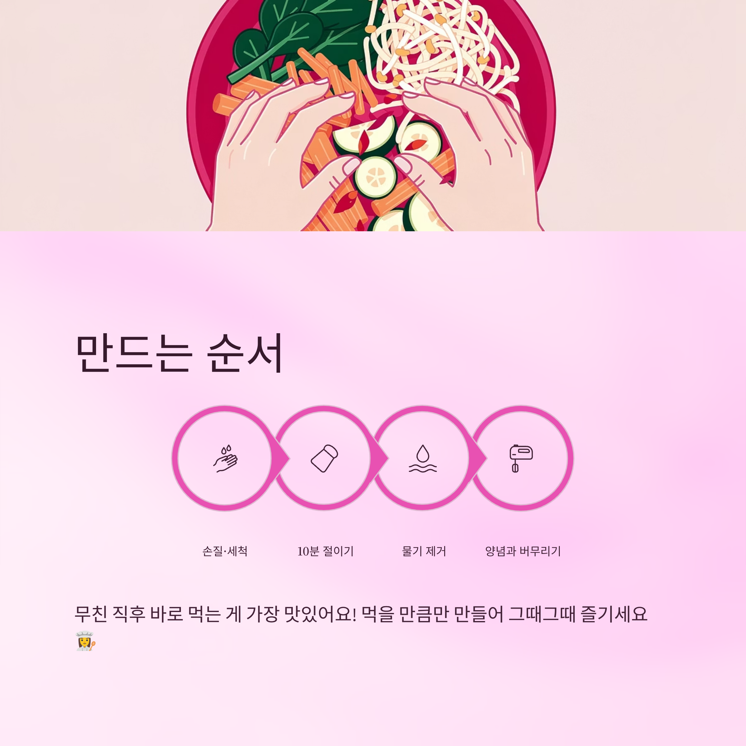 | 밥반찬 | 바로 무쳐 식사 직전 제공 | 쌀밥과 환상궁합 |