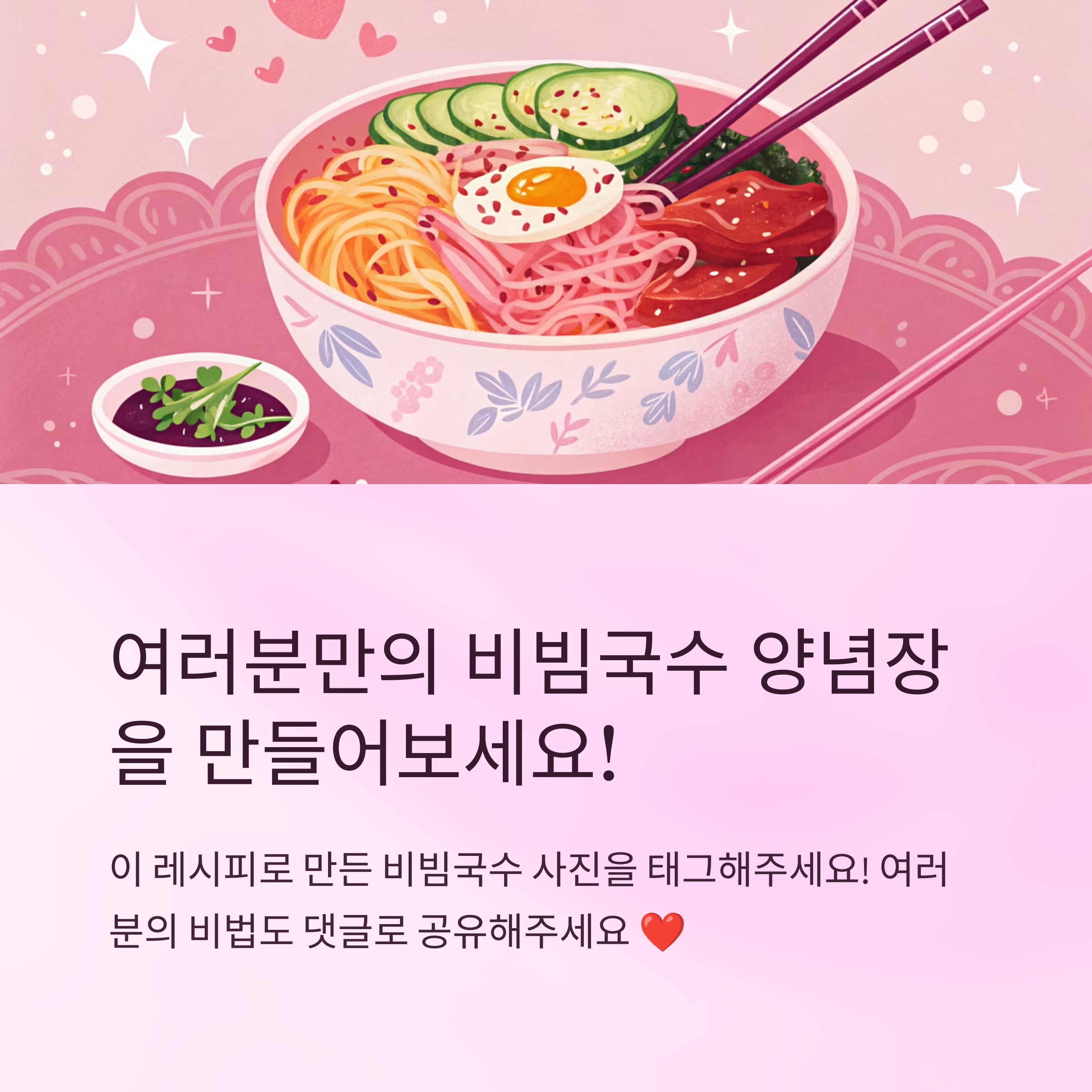 위의 표를 보면 알 수 있듯이, 같은 비빔국수 양념장이더라도 지역에 따라 상당히 다른 맛의 스타일을 가질 수 있어요. 하지만 기본은 새콤달콤하고 깔끔한 마무리라는 점에서 공통된답니다 🥢