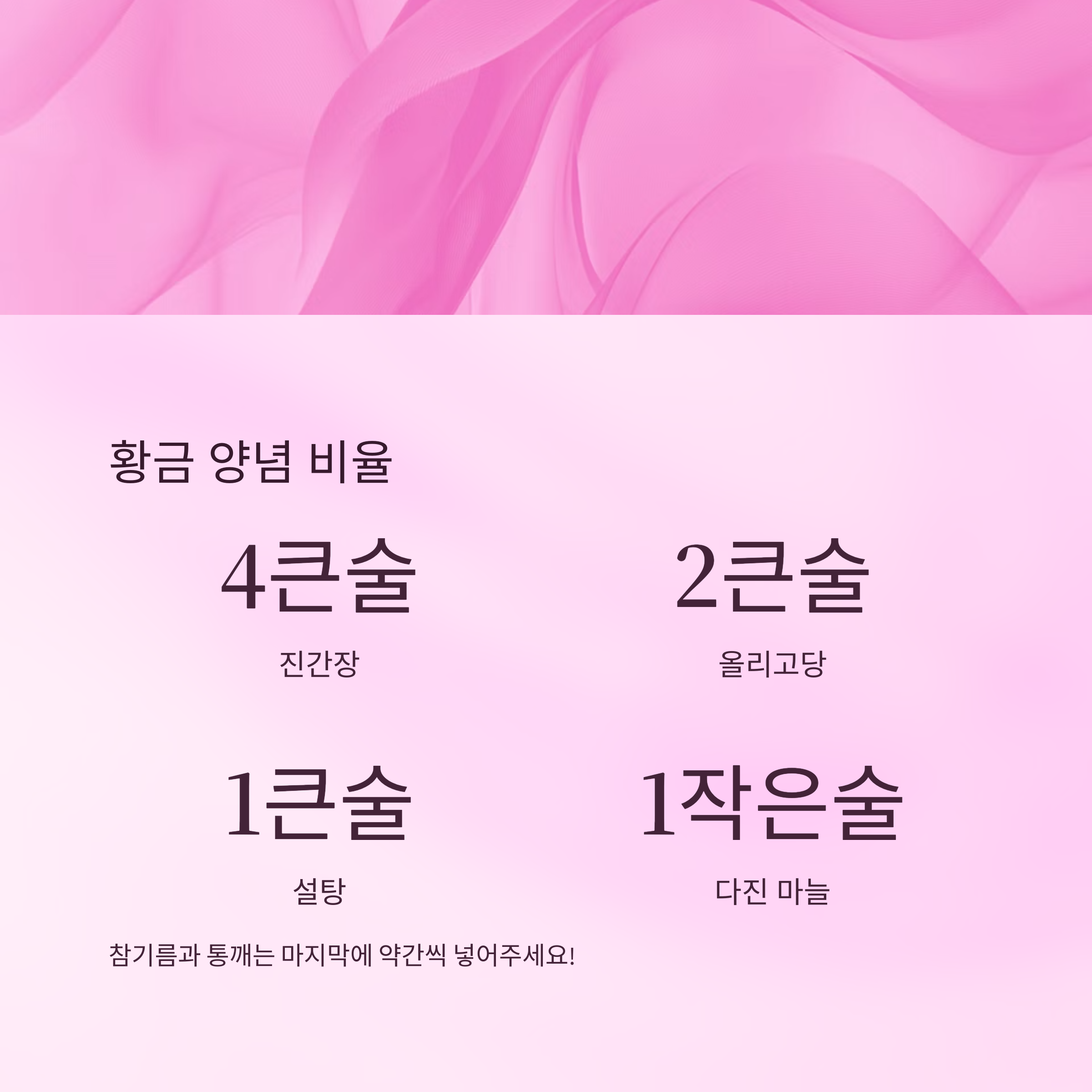 | 참기름, 통깨 | 불 끄고 마지막에 넣기 |