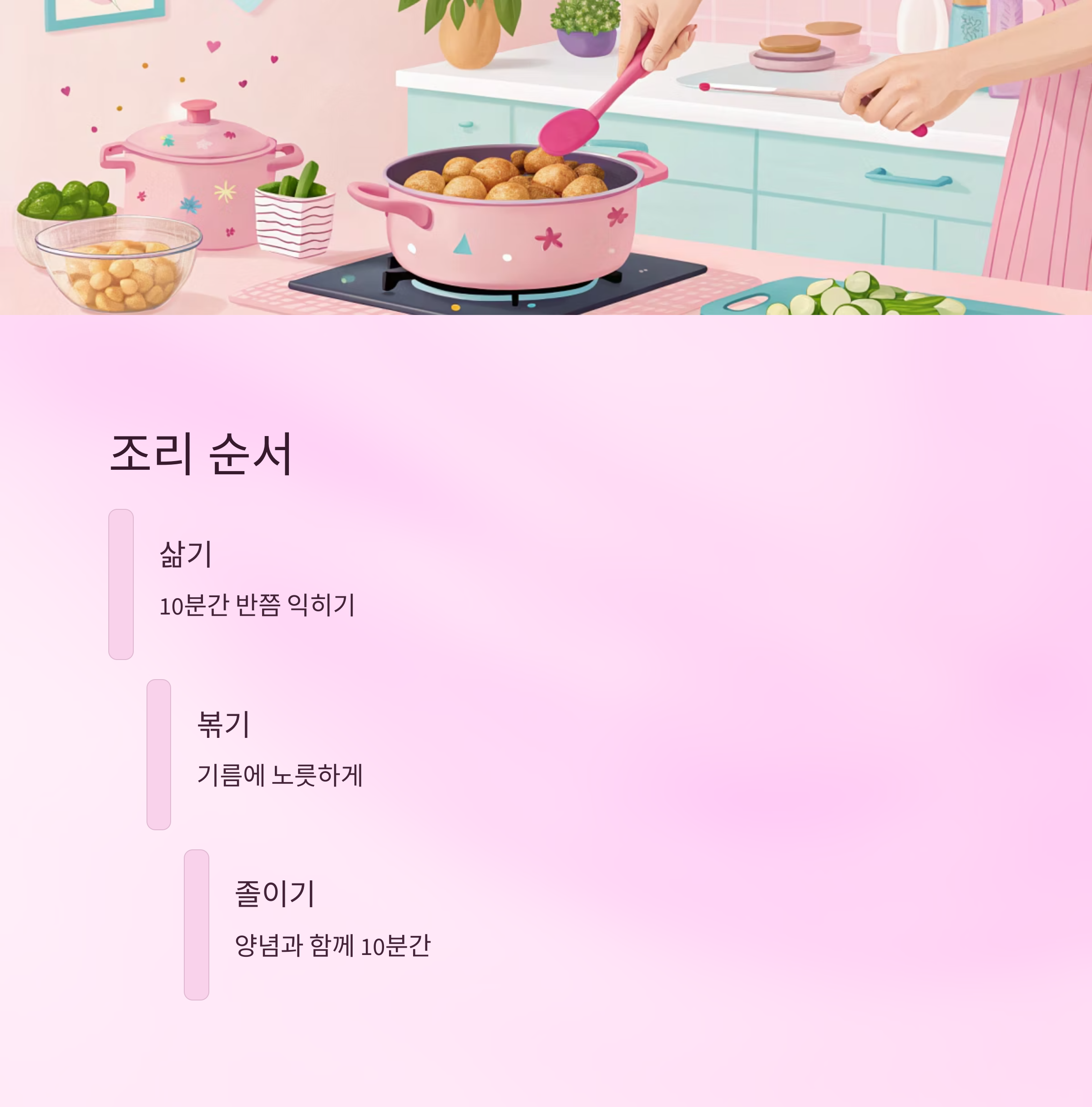 | 4단계 | 양념 졸이기 | 뚜껑 덮고 중불로 |