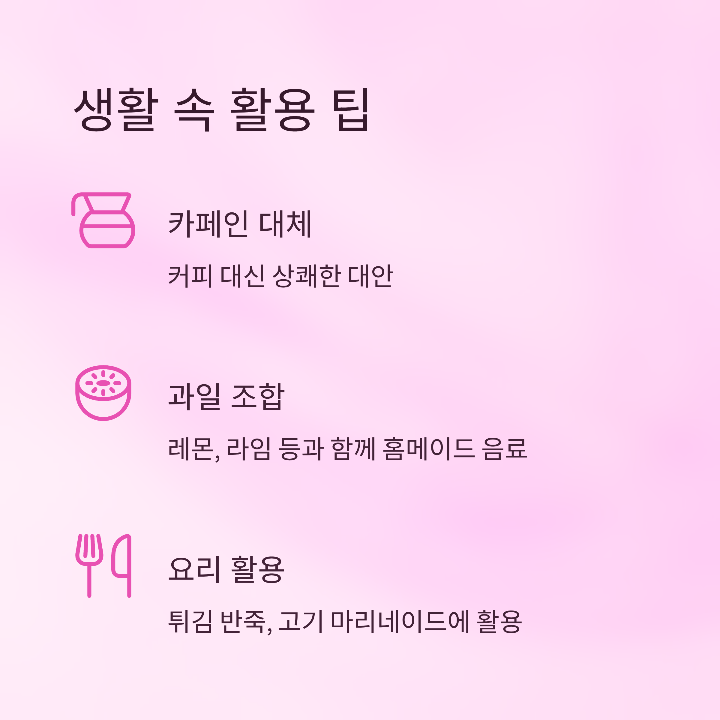 | 피로 회복 | 청량감 + 미네랄로 활력 회복 |