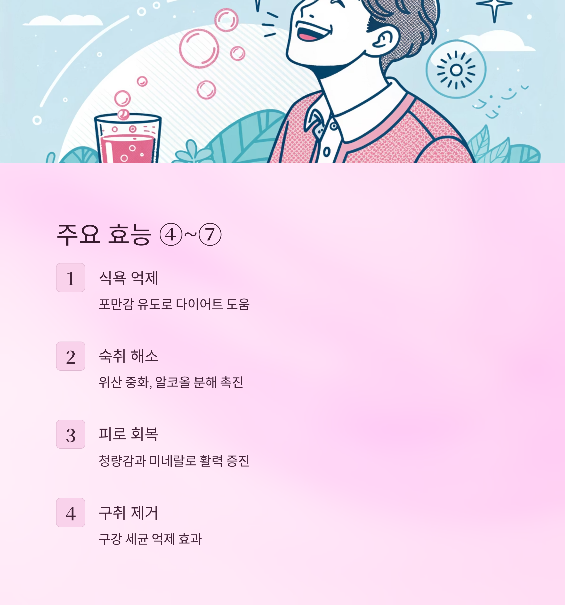 | 숙취 완화 | 위산 중화 및 탄산 자극 효과 |