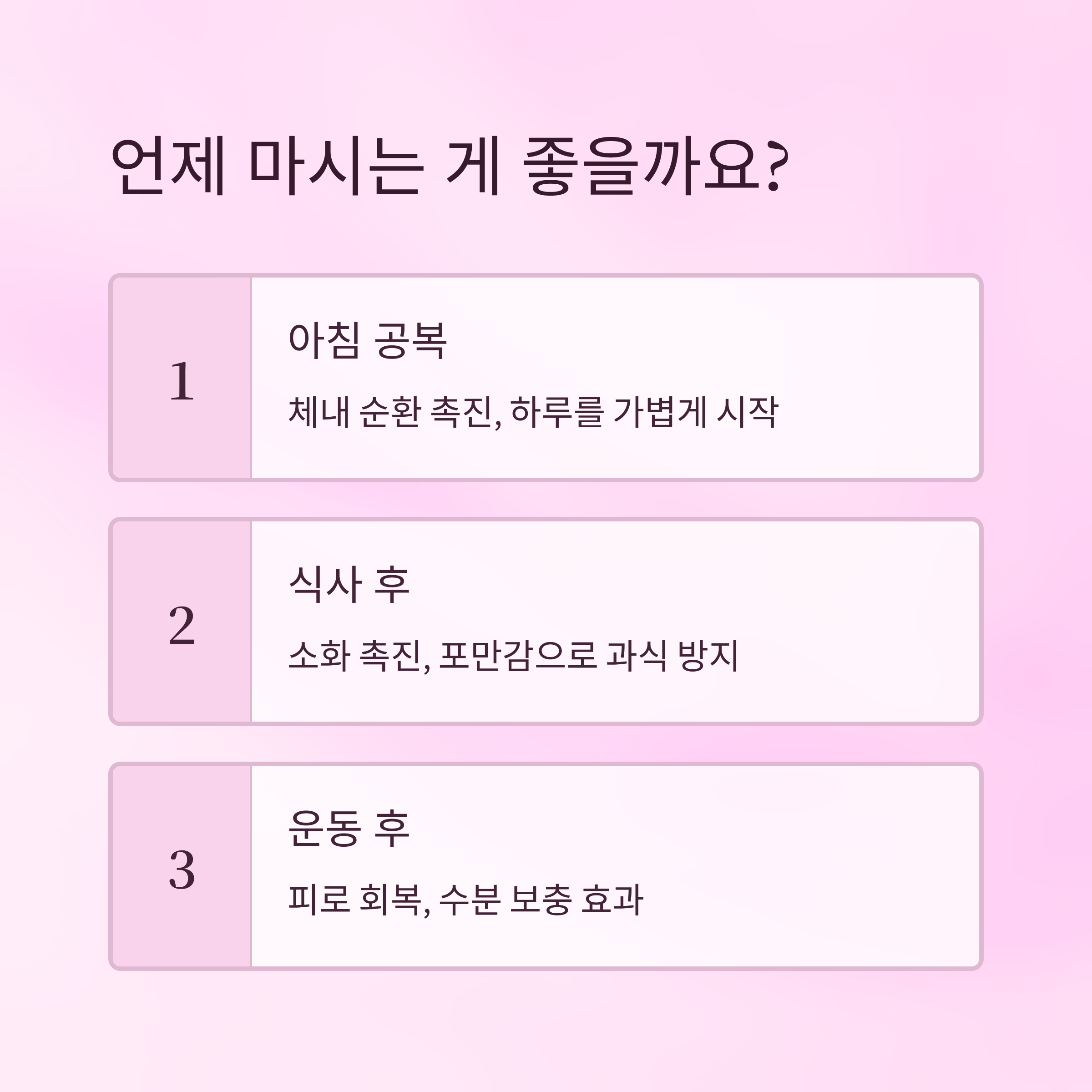 ⏰ 언제 어떻게 마셔야 좋을까요?