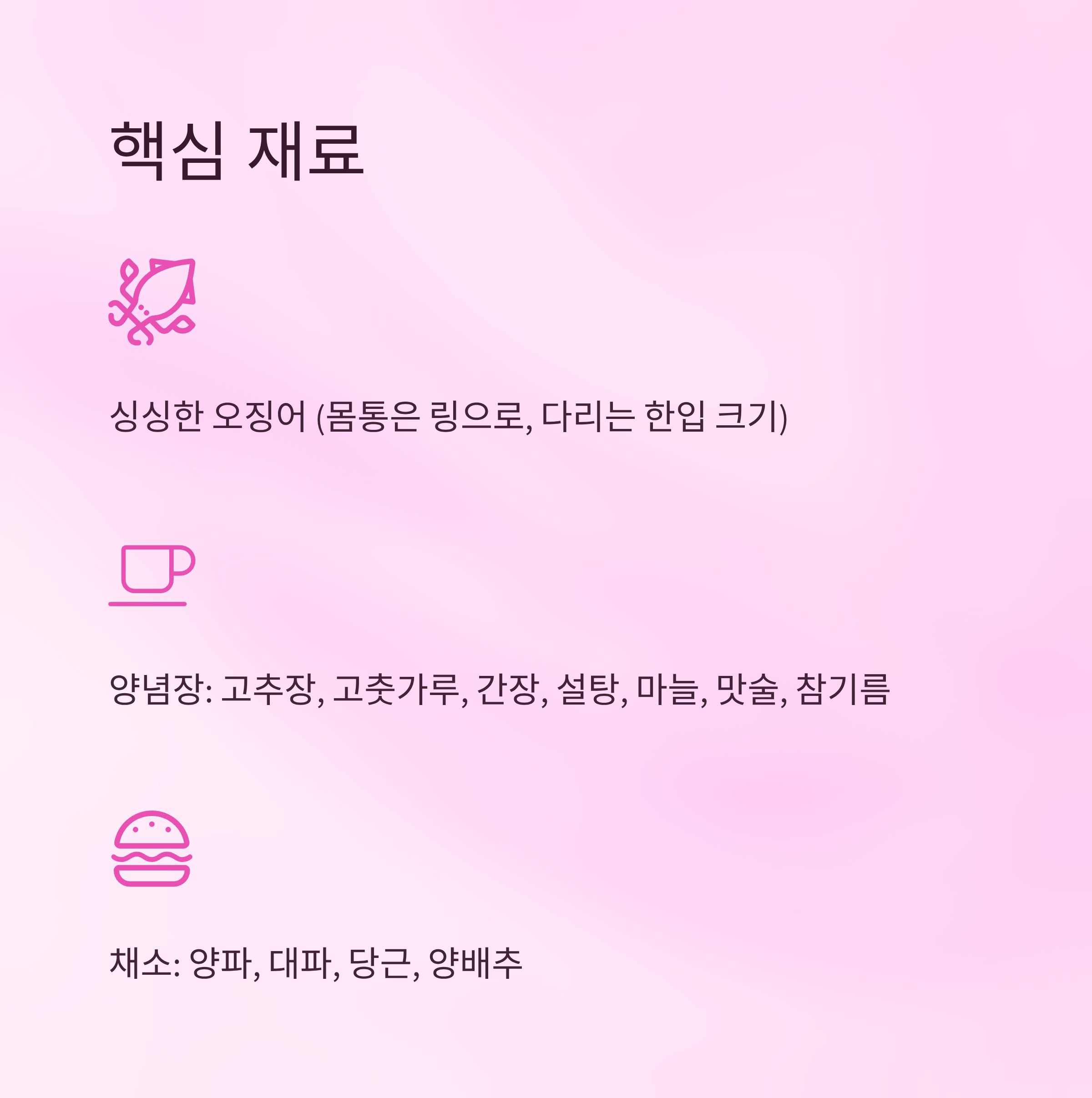 | 1 | 오징어 손질 | 물기 제거 필수 |