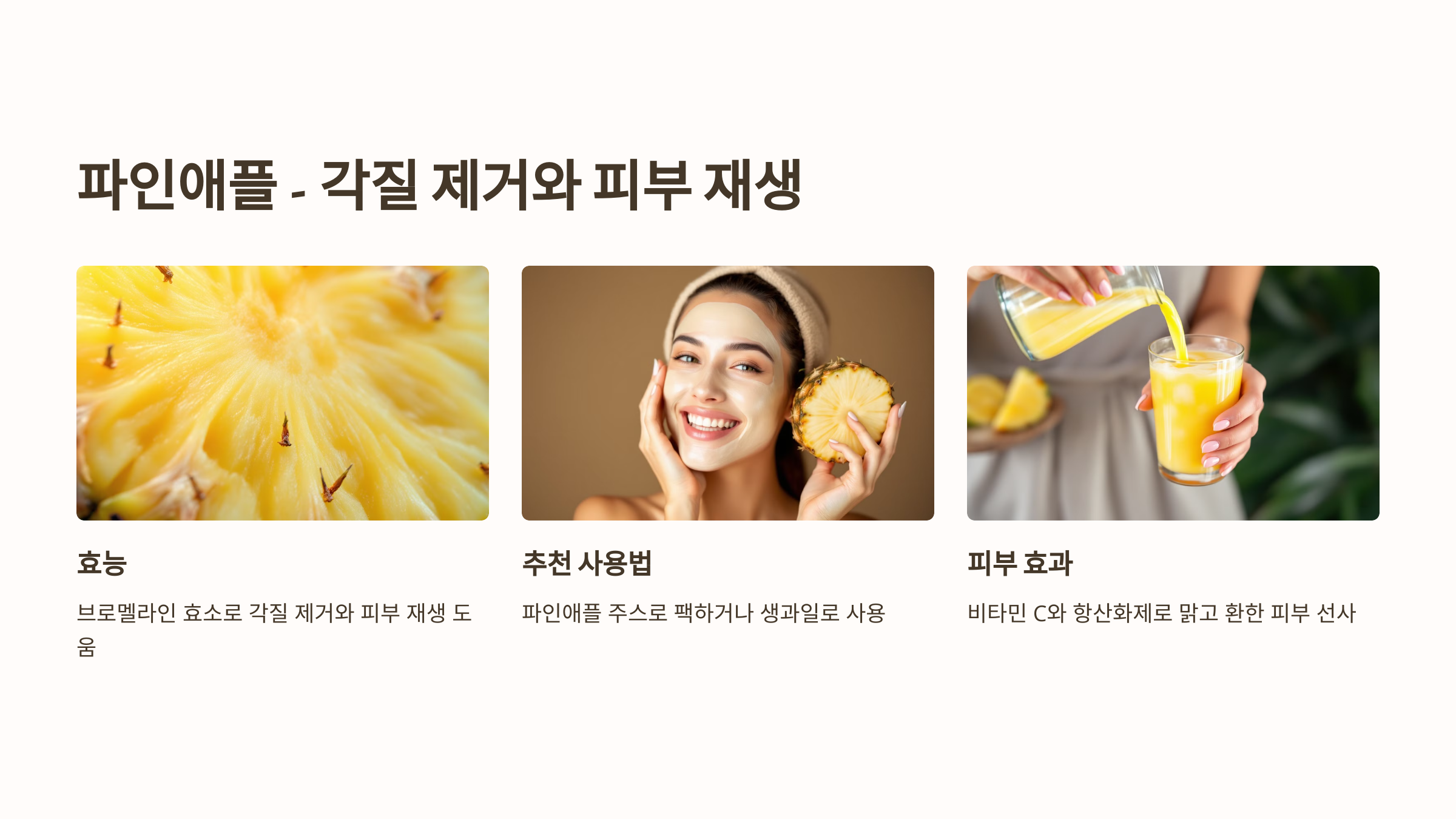 1. 🍍 파인애플 - 각질 제거와 피부 재생에 효과적