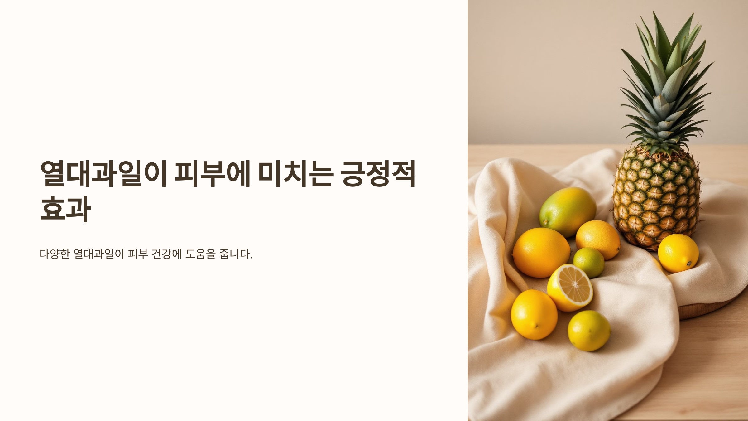 네, 열대과일은 항산화 성분과 비타민이 풍부해 피부 건강에 큰 도움을 줍니다. 특히 비타민 C가 많은 과일을 섭취하면 피부톤 개선과 노화 방지에 효과적입니다.