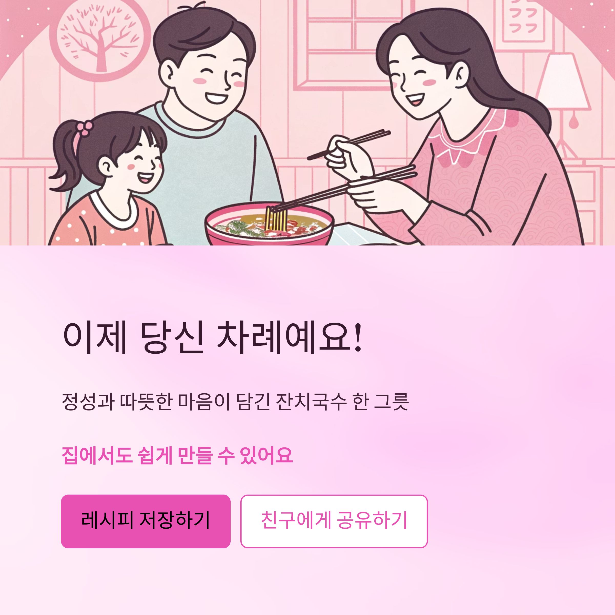 요즘은 잔치국수를 혼자서도 간편하게 해먹을 수 있는 레시피가 많아졌어요. 그러나 그 안에도 여전히 ‘함께 나눠 먹는 따뜻함’이 담겨 있다는 점, 그게 이 음식의 진짜 매력이 아닐까 해요.