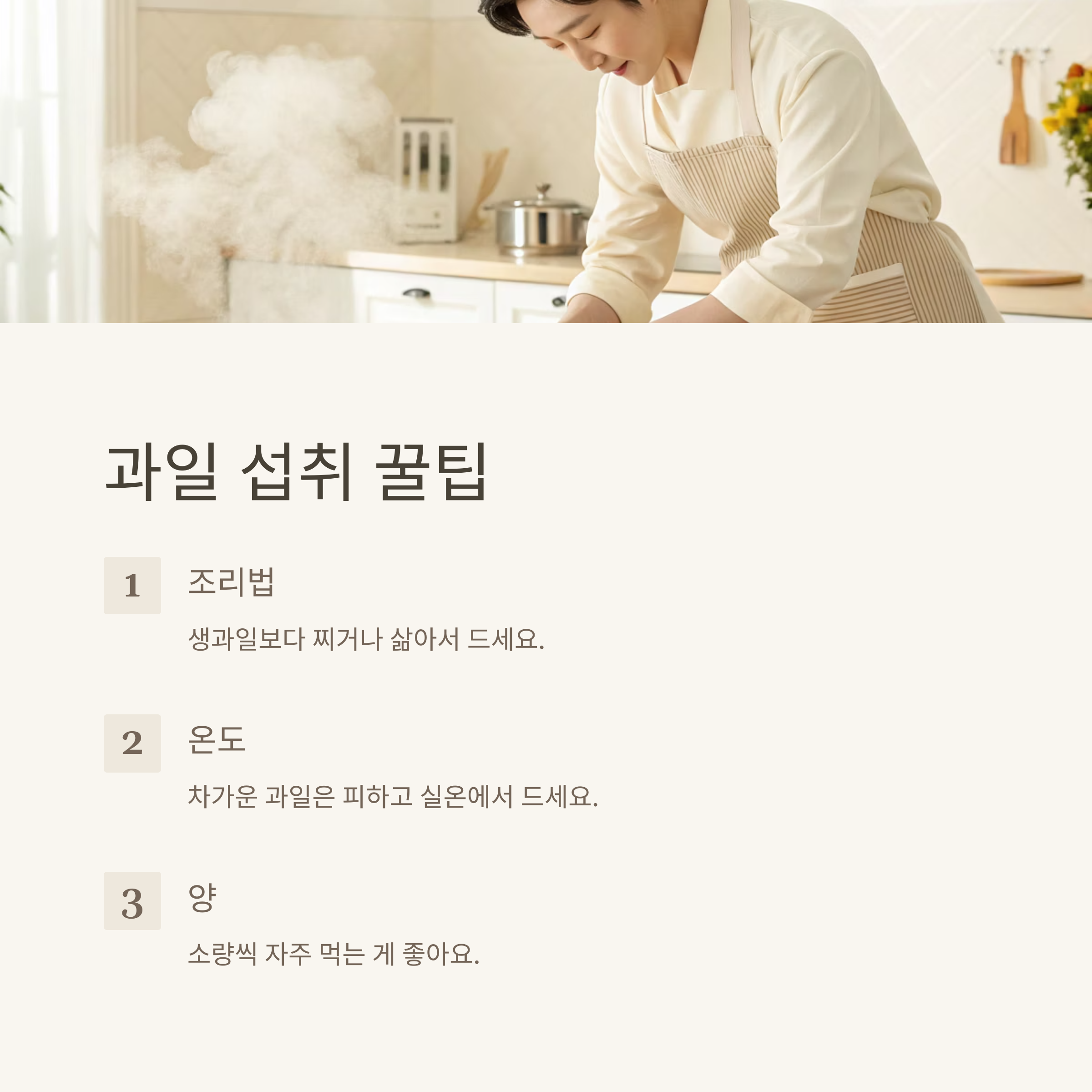 3. 너무 차가운 과일은 장에 부담을 줘요. 실온에서 먹는 게 가장 좋아요.