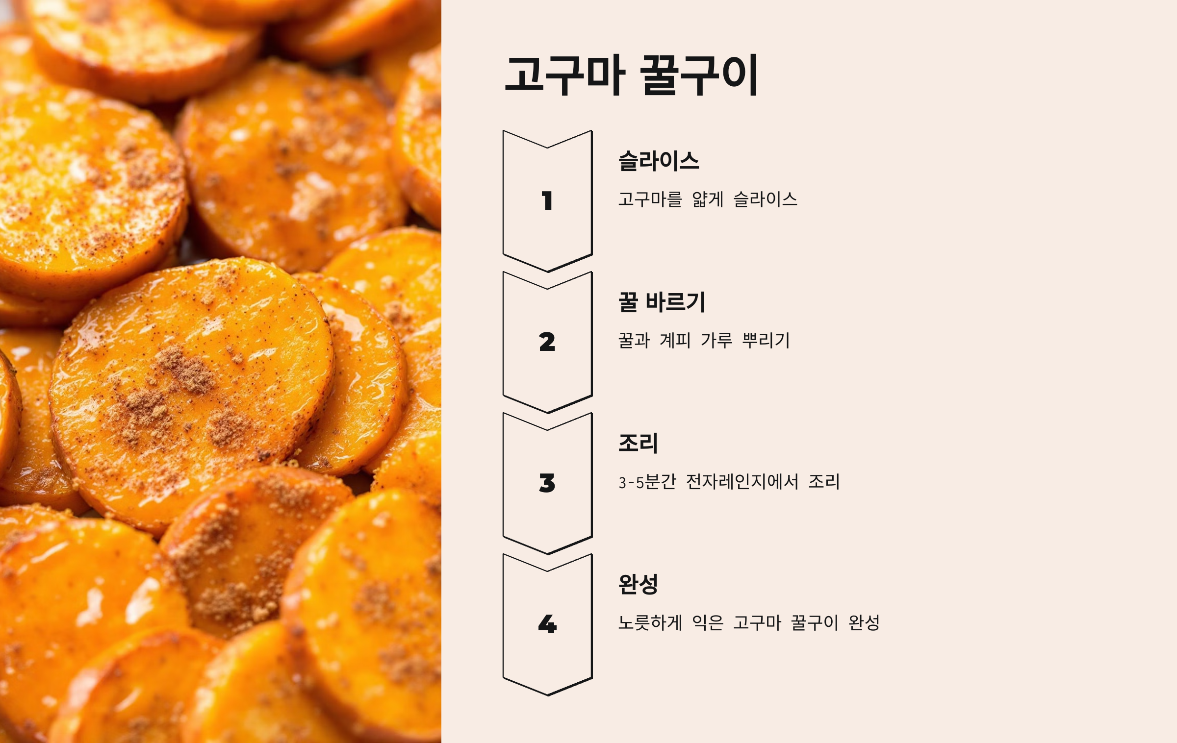- 전자레인지 조리: 고구마 슬라이스를 전자레인지용 접시에 놓고, 3~5분간 돌려줍니다. 꿀이 눌러붙지 않도록 중간에 한 번 뒤집어 주세요.