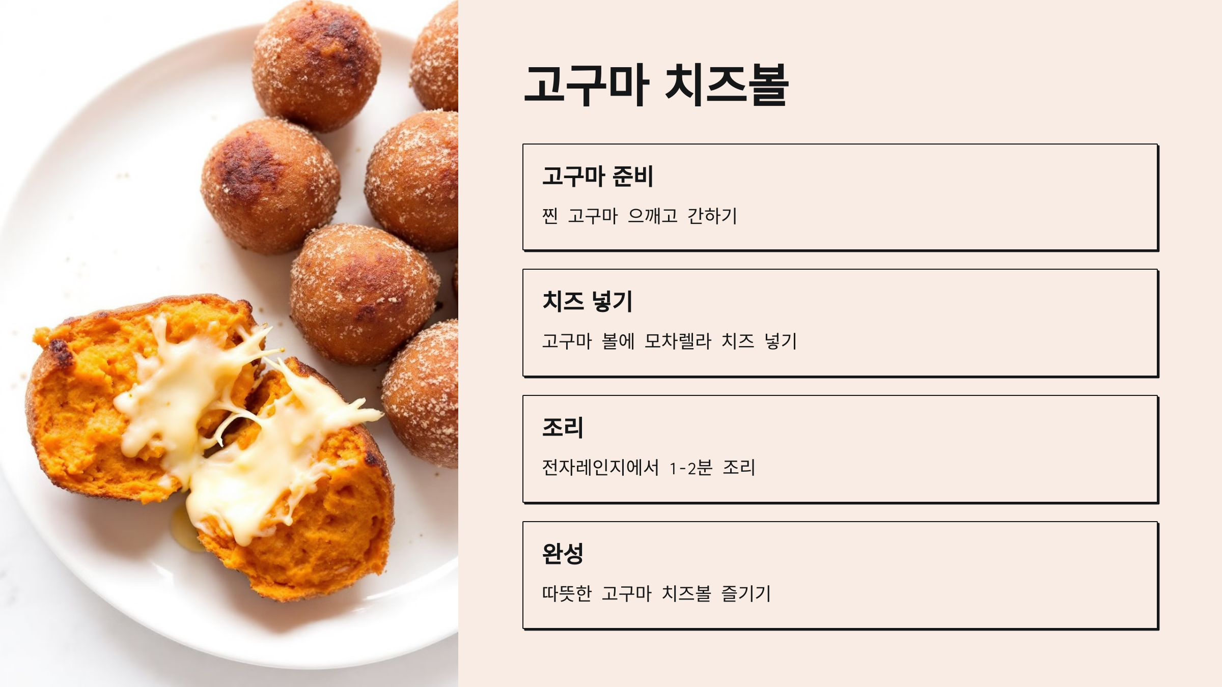 - 완성: 고구마 치즈볼이 따뜻하게 익으면 꺼내서 바로 즐기세요.