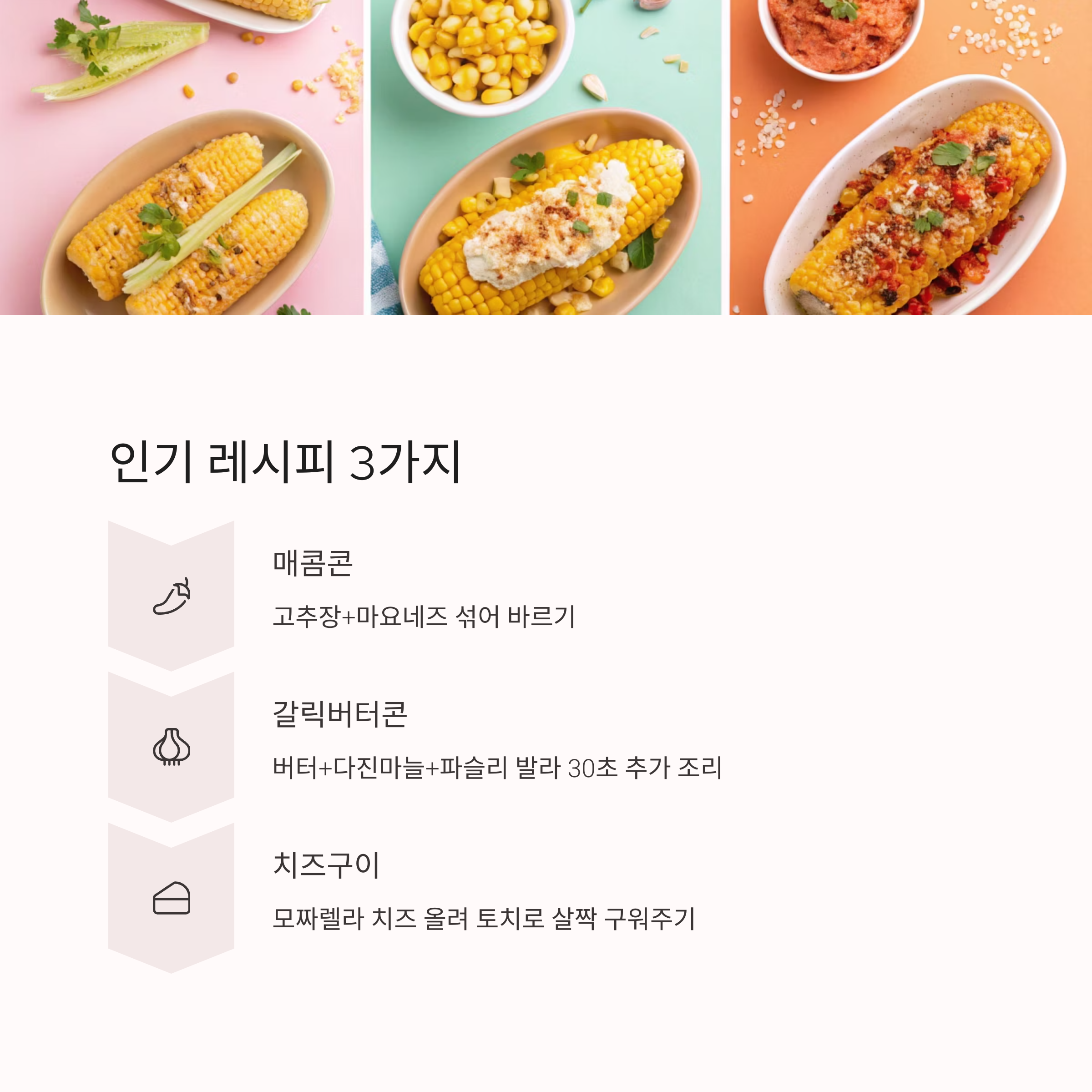 | 갈릭버터콘 | 버터, 마늘, 파슬리 | 향긋하고 고소해요 |