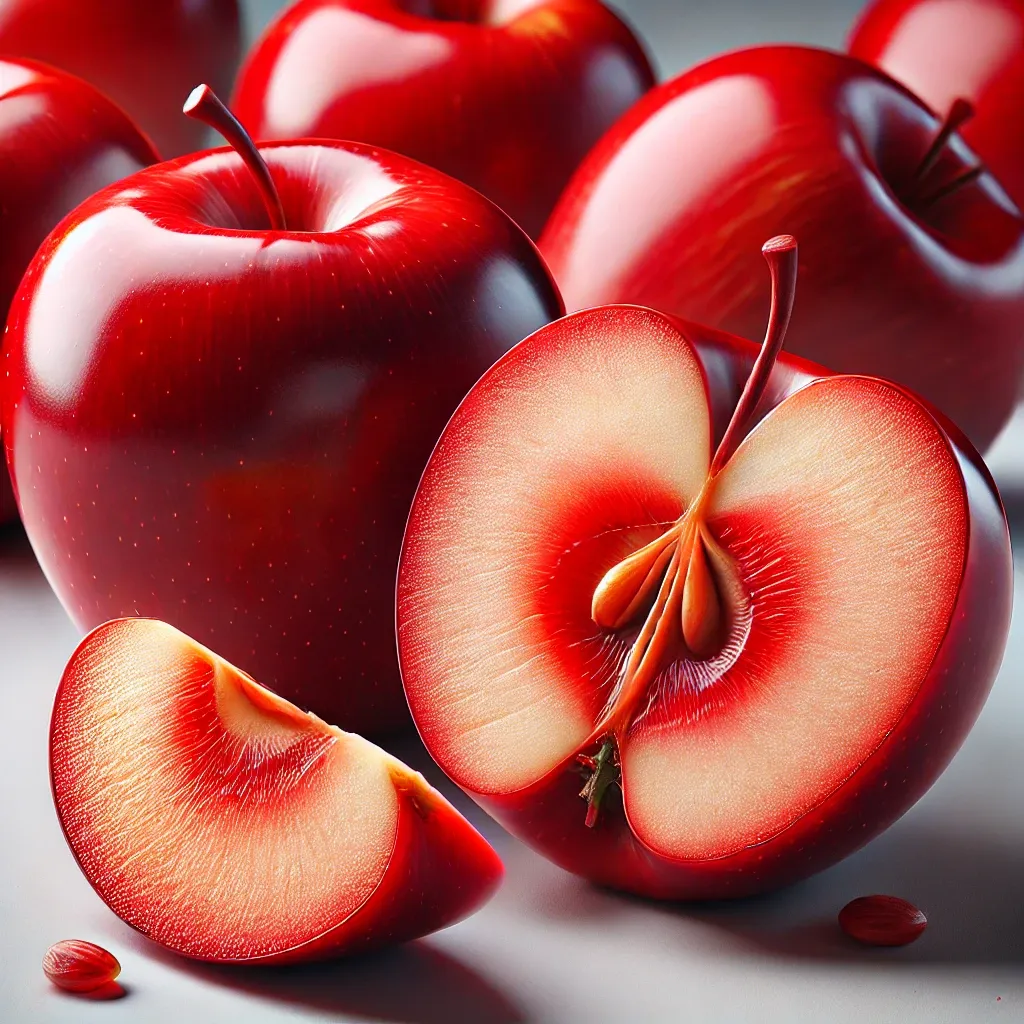 속까지 빨간 사과는 비타민 C와 안토시아닌 성분이 풍부해 면역력 강화와 피부 건강에도 도움을 줍니다. 또한, 식감이 아삭하고 맛이 달콤하면서도 약간의 새콤함이 있어 한국뿐만 아니라 해외에서도 인기를 끌고 있습니다.