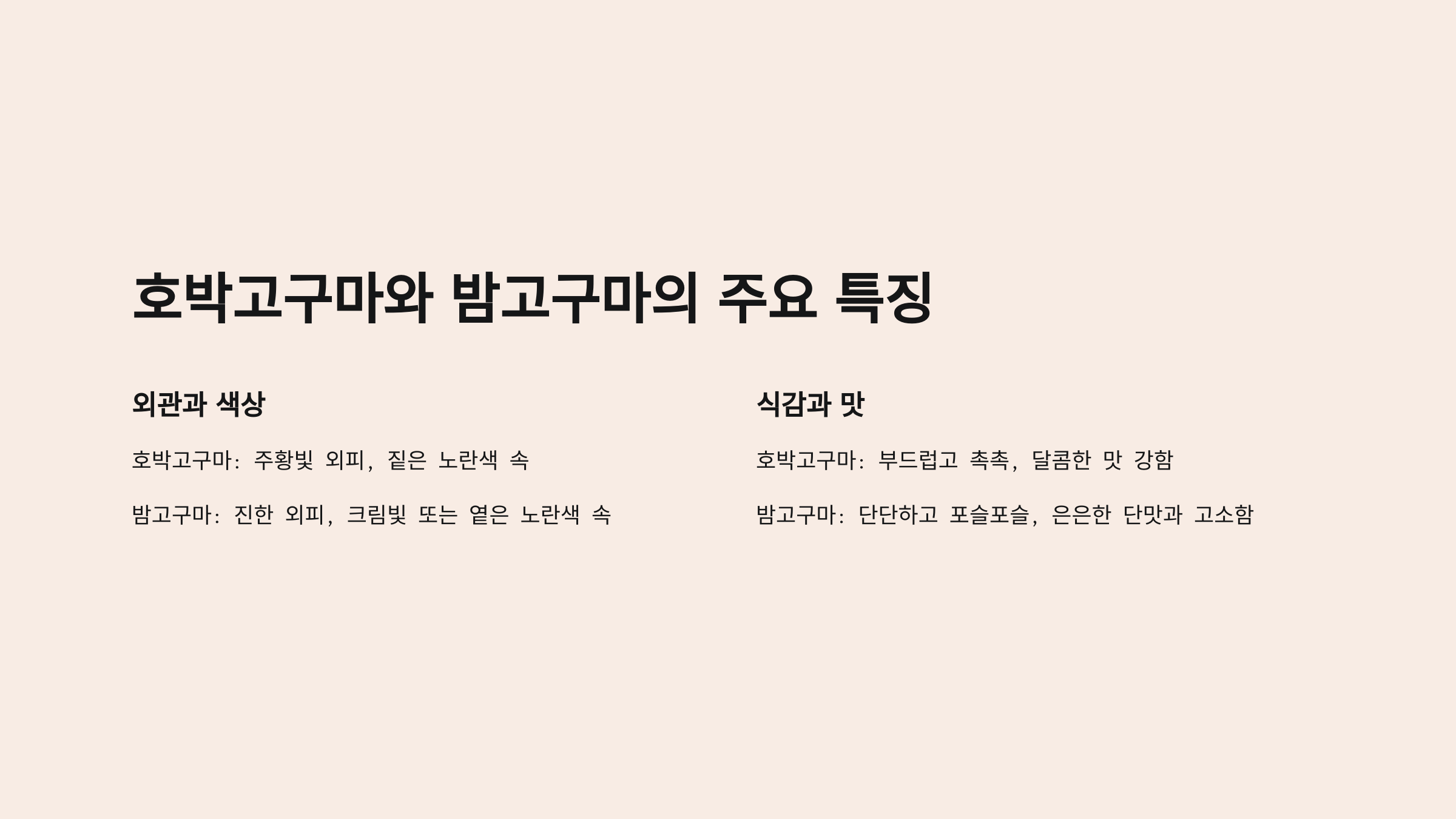 호박고구마와 밤고구마의 주요 특징 🍠
