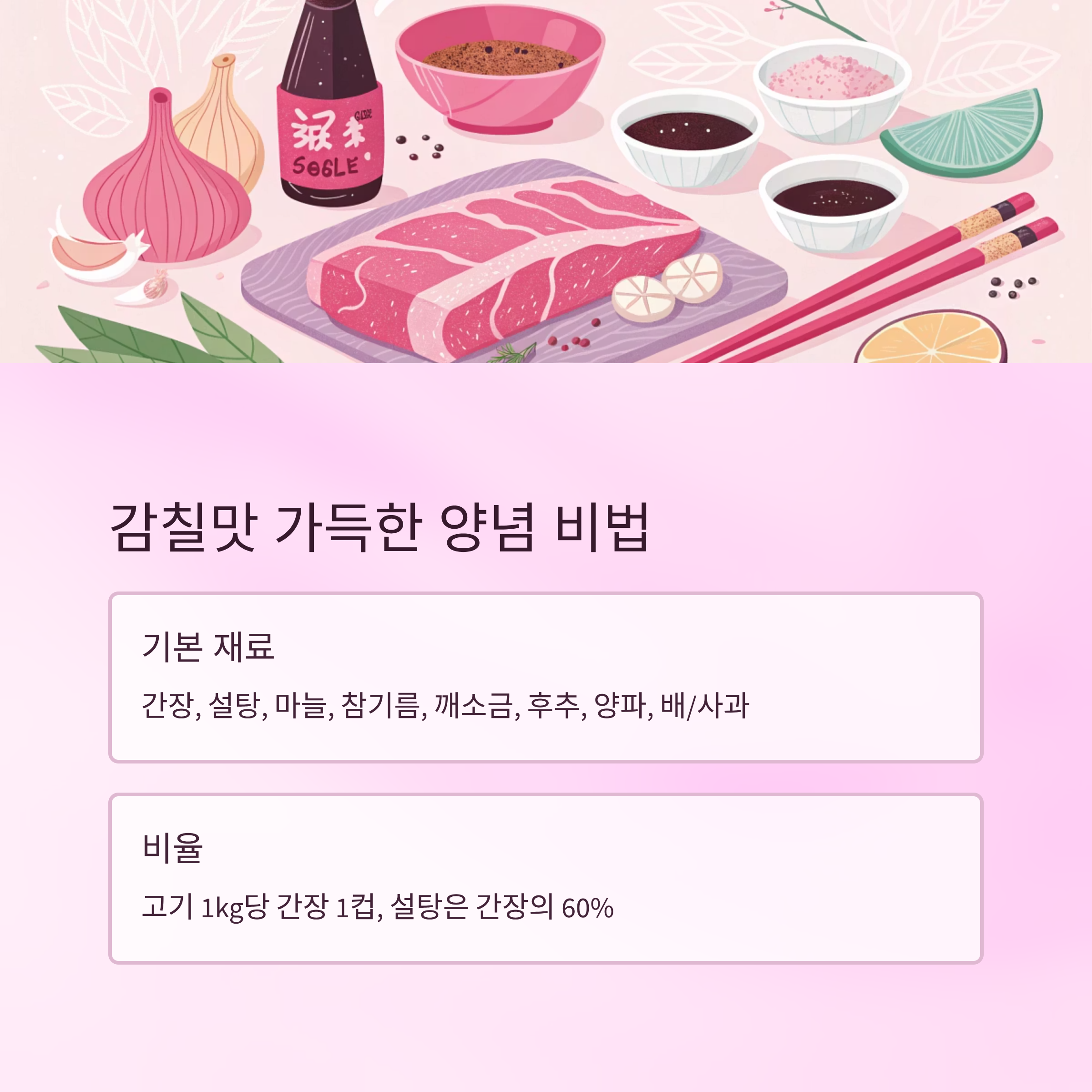 간장의 양은 고기 1kg당 1컵 정도가 적당하고, 설탕은 간장의 60% 정도만 넣는 게 좋아요. 너무 달게 하면 고기의 풍미가 덮일 수 있으니 조절이 필요해요. 마늘은 많이 넣을수록 풍미가 진해지기 때문에 다진 마늘은 아낌없이 사용하는 걸 추천해요.